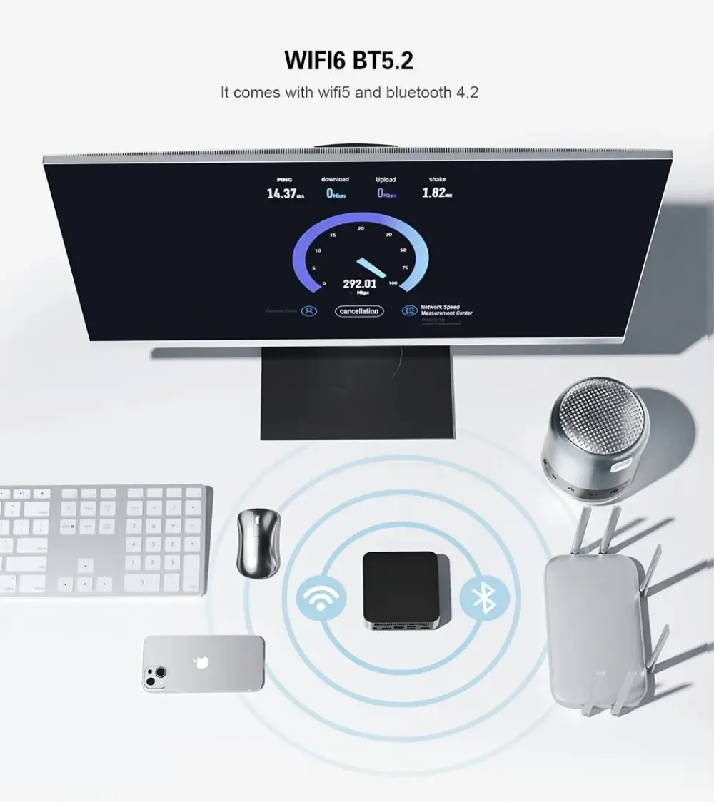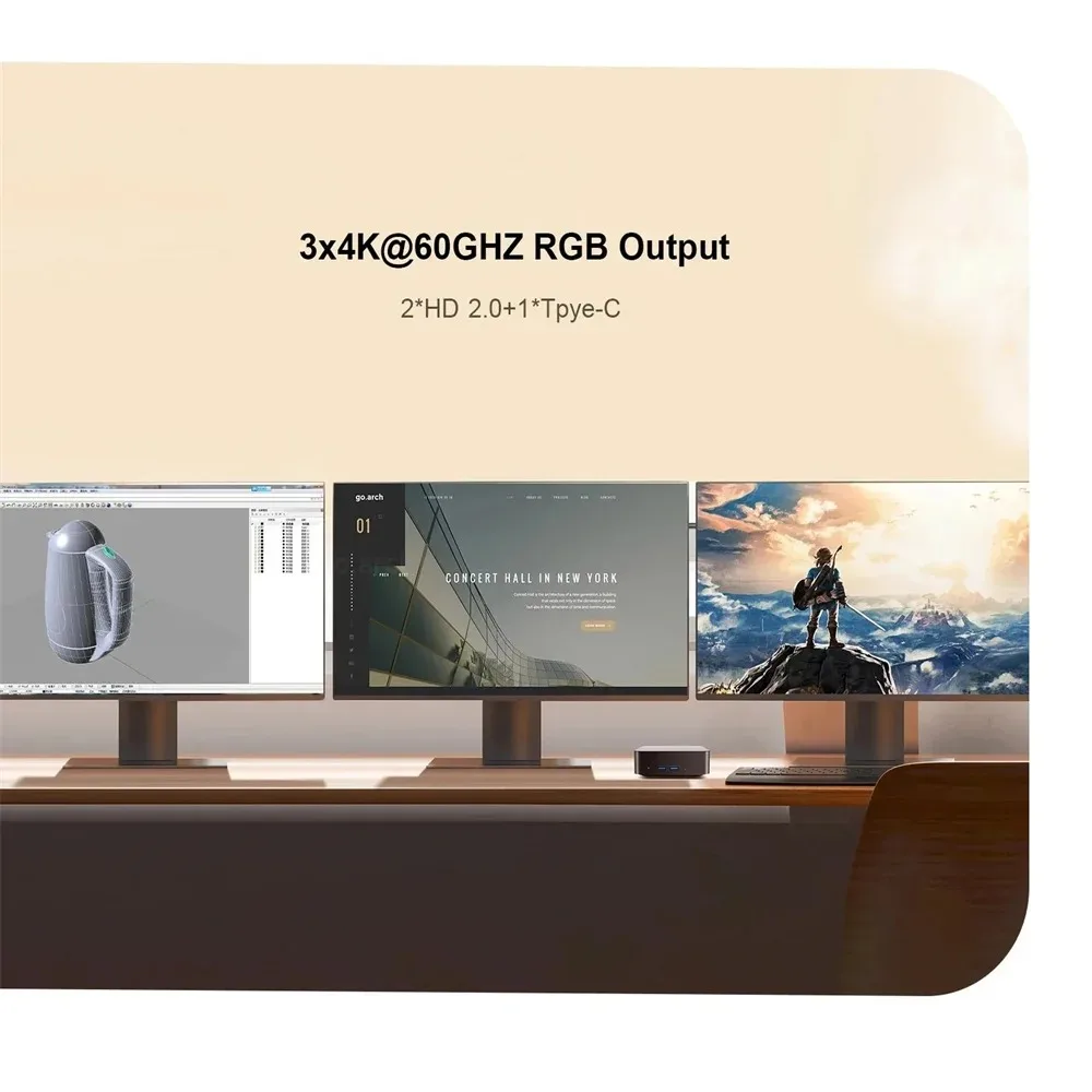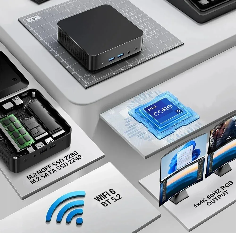 – The mini gaming desktop pc is pre-installed Windows 11, WiFi 6 wireless communication, BT5.2 and dual Gigabit Ethernet RJ45 ports allows the use of more networks.