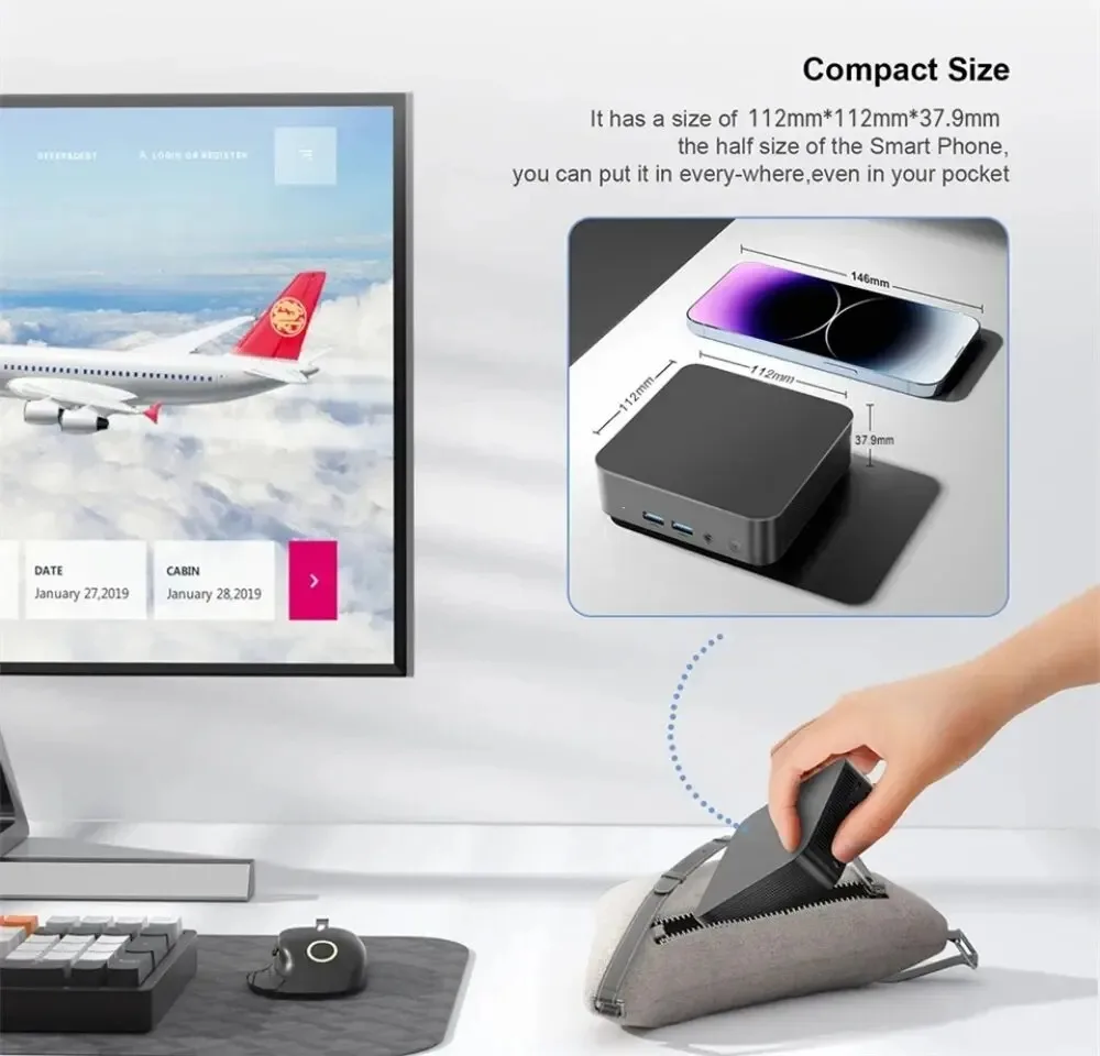 – This Intel mini pc measures 11.2 x 11.2 x 3.6cm and weighs about 400g, lightweight and portable, so it’s easy to put it in the bag at any time.