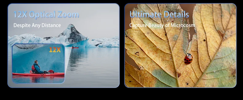 【Optical Viewfinder & 3.0inch Touch Screen】The 12X optical zoom brings distant subjects closer together, adding a whole new dimension to your photographic experience. Optical focusing means that whether you’re photographing a still or moving subject, you can capture every detail with precision and no loss of image quality. The 3.0-inch IPS HD touchscreen display, simple user interface and touchscreen functionality provide you with a clear and bright visual experience, and support for 180-270° flipping lets you set up and preview shots more quickly.
