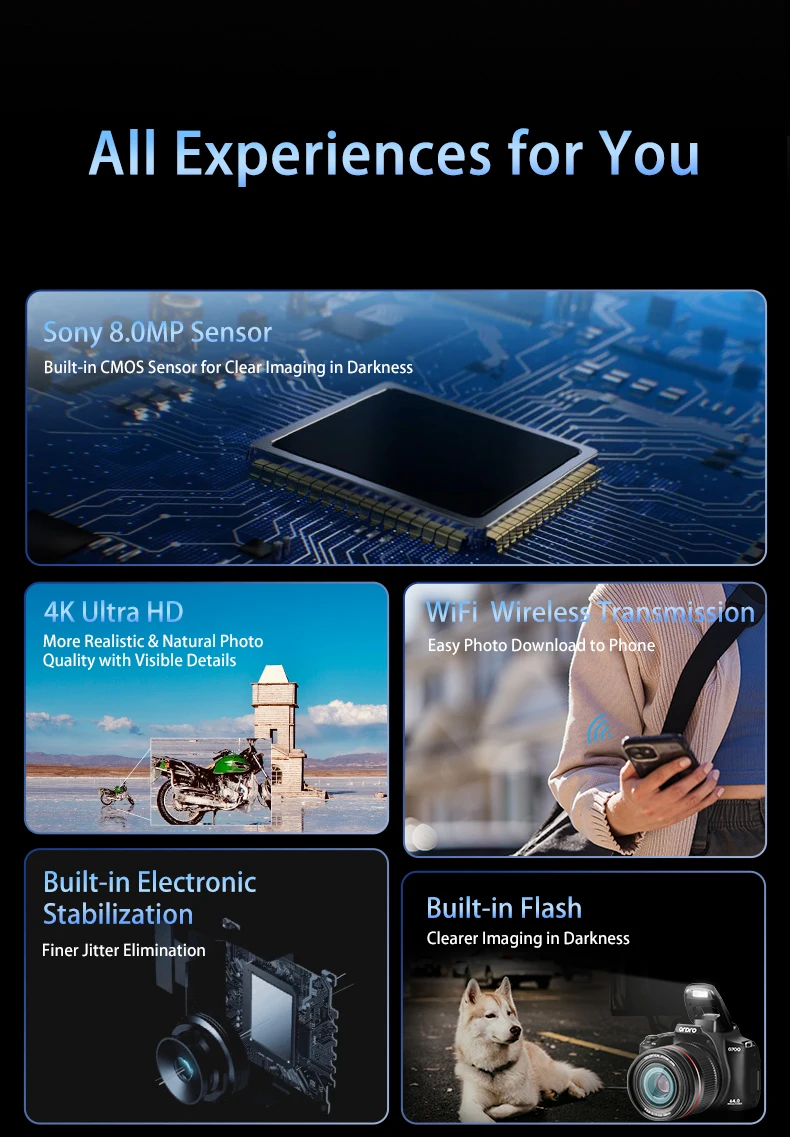 【4K 64MP Video Camera & Auto&Manual-Focus】The 4k digital camera for photography is equipped with a SONY 1/2.8” 8MP photosensitive chip to ensure richer image processing, supporting up to 64MP. Whether you’re capturing beautiful landscapes or close-ups, you’ll be able to deliver stunning visuals. The autofocus & manual focus function easily captures the smallest details for a clearer and more vivid picture.