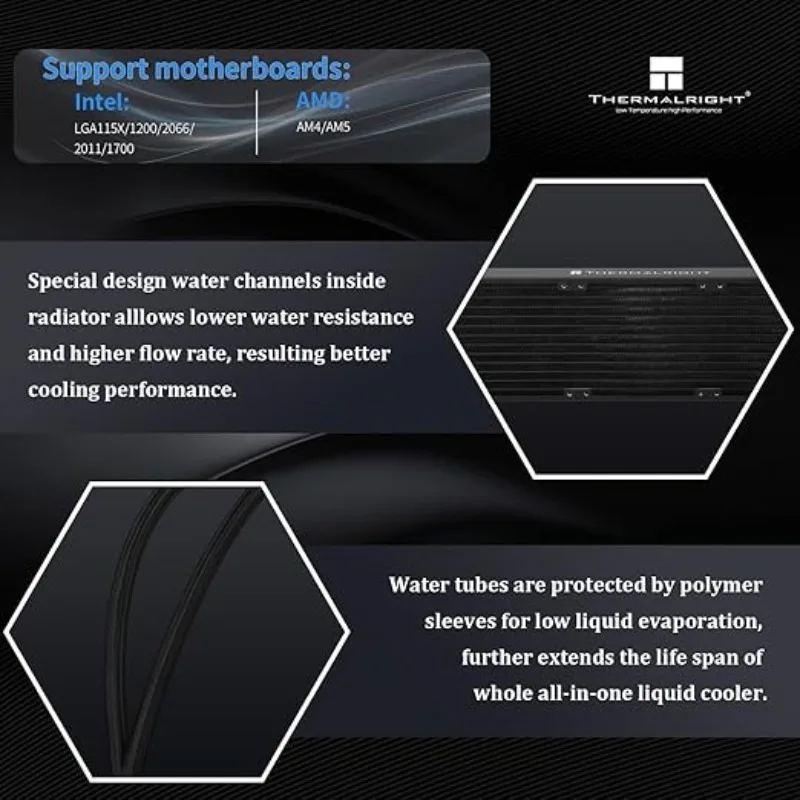 - [Wide compatibility] The cooler supports Intel 14th generation + AMD RYZEN 7000, supported slots: AMD: AM4/AM5,Intel: LGA1150/1151/1155/1156/1200/2011/2066/1700/1851,each platform comes with corresponding installation fasteners, installation steps are simple and can be It is easy to install and can be well installed to the corresponding CPU platform,it is recommended to install according to the installation video or instructions.