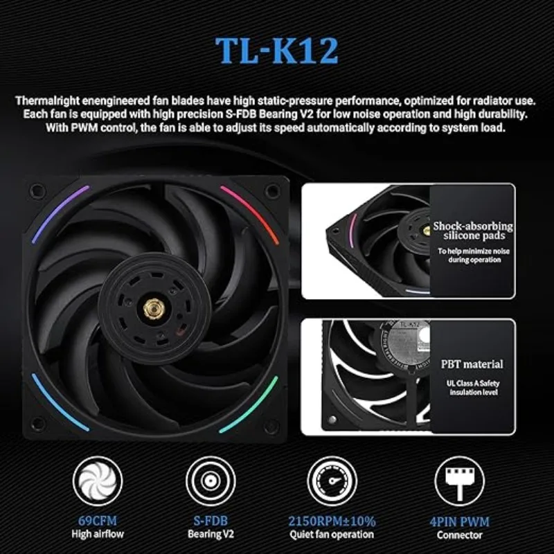 - [Excellent Bearing] The pwm fan adopts STABLY-FDB V2 bearing (abbreviation: S-FDB V2 bearing), which can solve the problem of fan blade shaking and vibration in the hanging mode, and greatly improve the performance of the cooling fan. The secondary dispensing dynamic balancing technology makes the balance of the fan more stable, further ensuring the service life of the CPU water-cooling cooler.